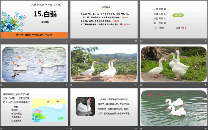 关键词:部编人教版四年级语文下册PPT课件免费下载,白鹅PPT下载,.PPT格式;