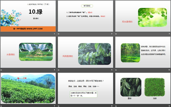2.感受作者对“绿”色的赞美,对春天的讴歌。(难点)