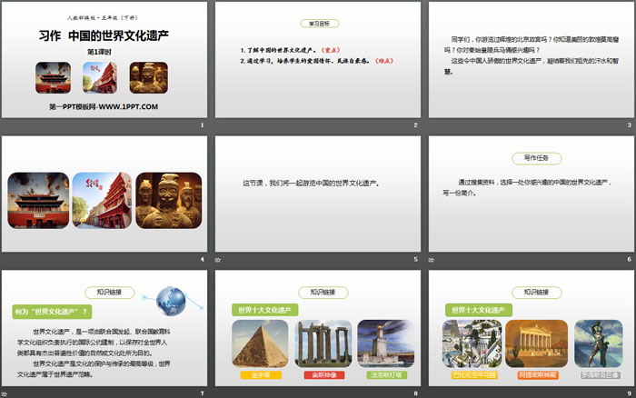 关键词:部编人教版五年级语文下册PPT课件免费下载,中国的世界文化遗产PPT下载,习作PPT下载,.PPT格式;