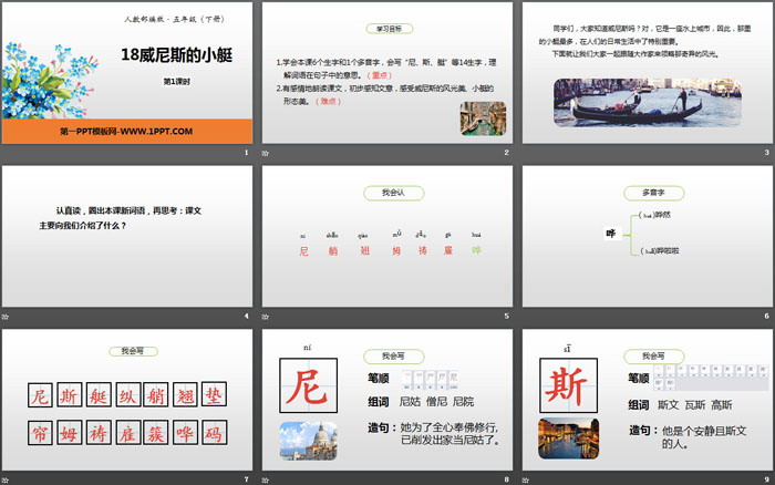 威尼斯的小艇PPT,第二部分内容:我会认