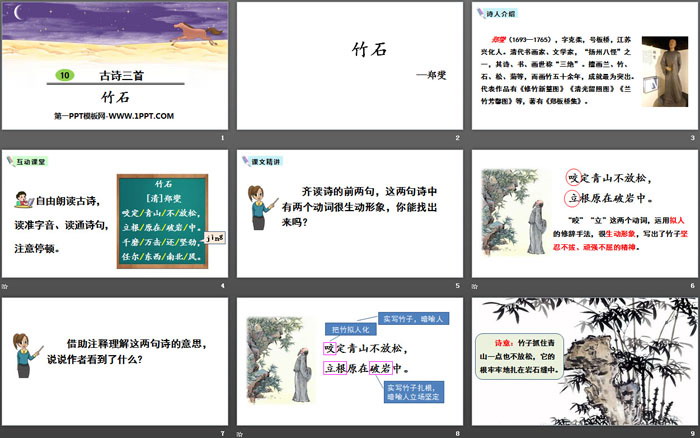 关键词:部编人教版六年级语文下册PPT课件免费下载,竹石PPT下载,古诗三首PPT下载,.PPT格式;