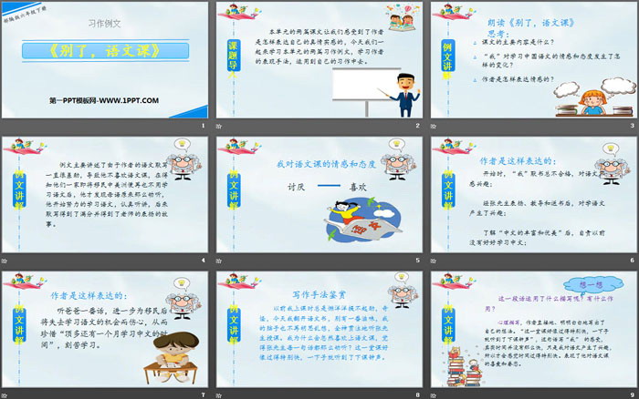 关键词:部编人教版六年级语文下册PPT课件免费下载,别了语文课PPT下载,习作例文PPT下载,.PPT格式;