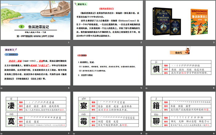 关键词:部编人教版六年级语文下册PPT课件免费下载,鲁滨逊漂流记PPT下载,.PPT格式;