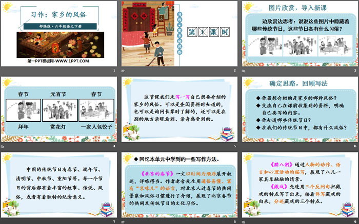 关键词:部编人教版六年级语文下册PPT课件免费下载,家乡的风俗PPT下载,习作PPT下载,.PPT格式;