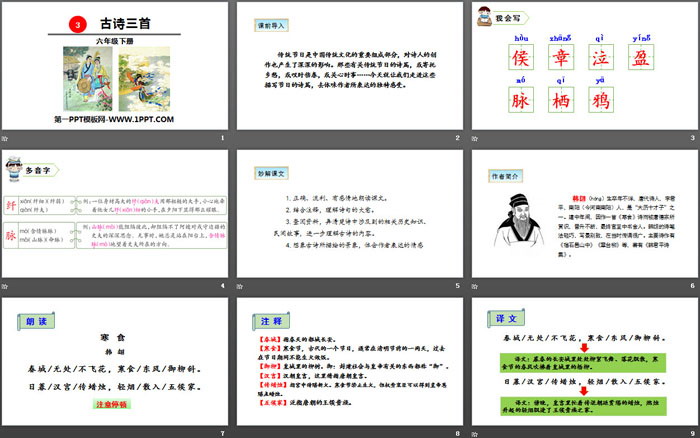关键词:部编人教版六年级语文下册PPT课件免费下载,古诗三首PPT下载,寒食PPT下载,迢迢牵牛星PPT下载,十五夜望月PPT下载,.PPT格式;