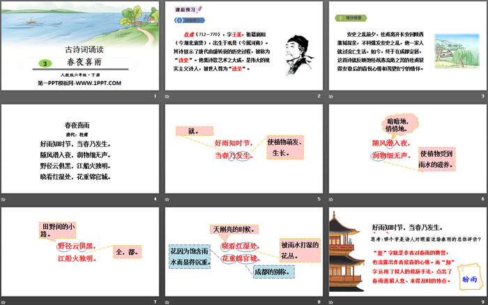 关键词:部编人教版六年级语文下册PPT课件免费下载,春夜喜雨PPT下载,古诗词诵读PPT下载,.PPT格式;