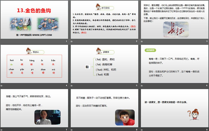 关键词:部编人教版六年级语文下册PPT课件免费下载,金色的鱼钩PPT下载,.PPT格式;