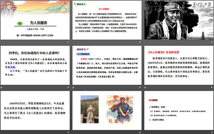 关键词:部编人教版六年级语文下册PPT课件免费下载,为人民服务PPT下载,.PPT格式;