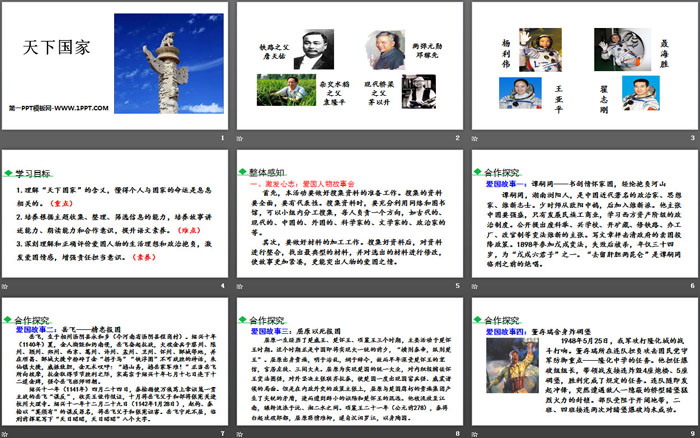 1.理解“天下国家”的含义,懂得个人与国家的命运是息息相关的。(重点)