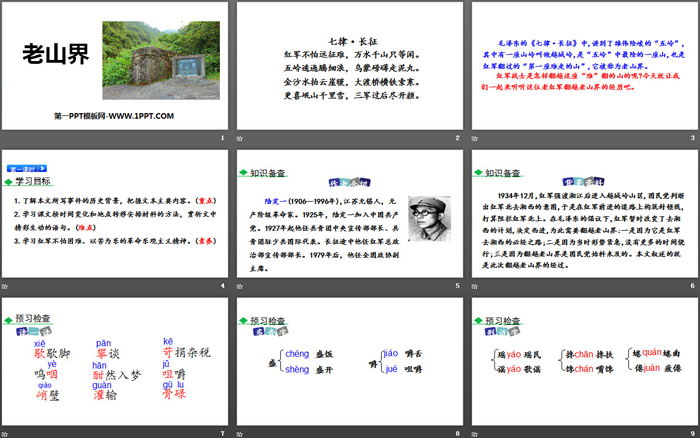 关键词:部编人教版七年级语文下册PPT课件免费下载,老山界PPT下载,.PPT格式;