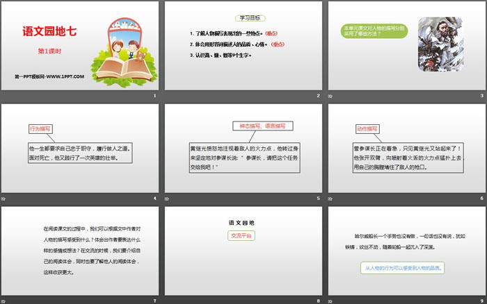 1.体会从人物的行为感受人物的品质,从人物的外貌看出人物的特点。