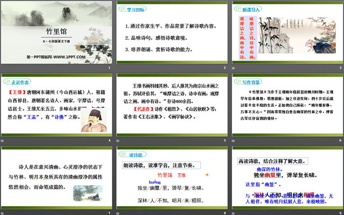 关键词:部编人教版七年级语文下册PPT课件免费下载,竹里馆PPT下载,.PPT格式;