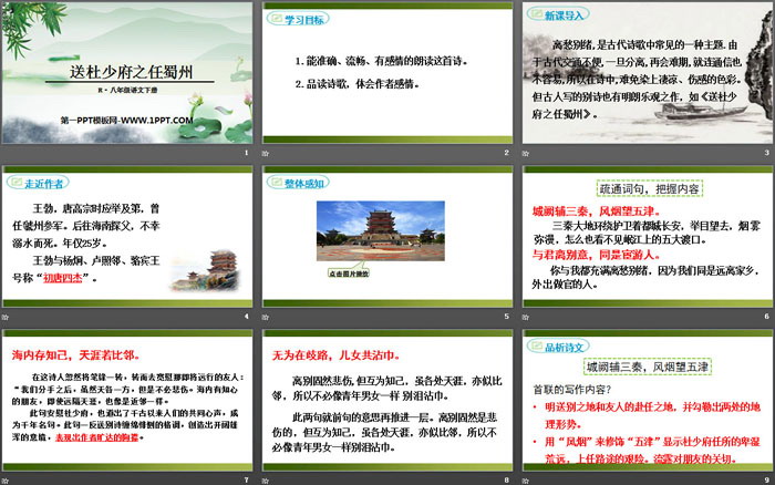 送杜少府之任蜀州PPT,第三部分内容:整体感知