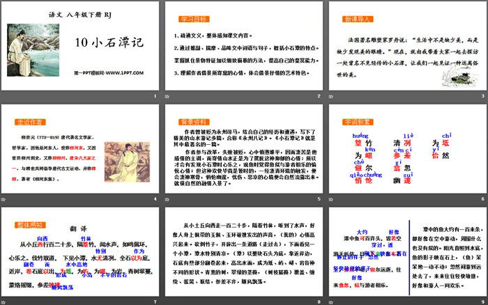 关键词:部编人教版八年级语文下册PPT课件免费下载,小石潭记PPT下载,.PPT格式;