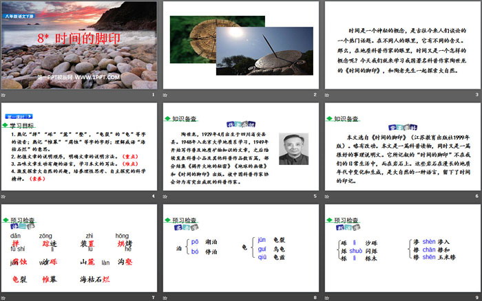 关键词:部编人教版八年级语文下册PPT课件免费下载,时间的脚印PPT下载,.PPT格式;