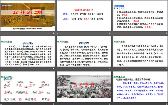 关键词:部编人教版八年级语文下册PPT课件免费下载,大道之行也PPT下载,虽有佳肴PPT下载,礼记二则PPT下载,.PPT格式;