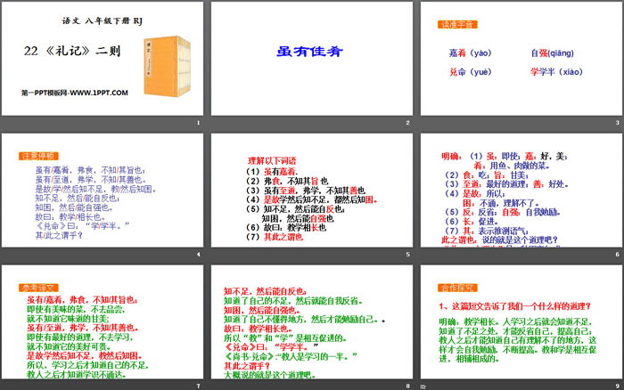 关键词:部编人教版八年级语文下册PPT课件免费下载,礼记二则PPT下载,虽有佳肴PPT下载,大道之行也PPT下载,.PPT格式;