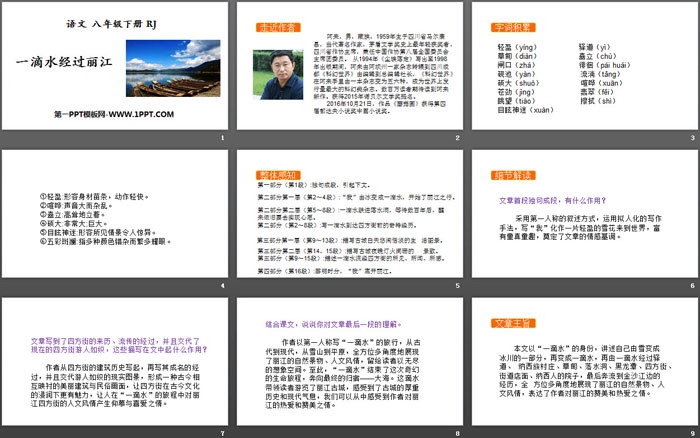 关键词:部编人教版八年级语文下册PPT课件免费下载,一滴水经过丽江PPT下载,.PPT格式;