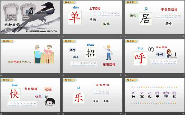 关键词:部编人教版一年级语文下册PPT课件免费下载,树和喜鹊PPT下载,.PPT格式;
