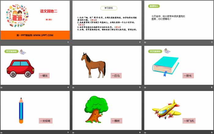 1.认识“辆、匹”等7个生字,正确认读数量短语,初步培养运用数量词的习惯。(重点)