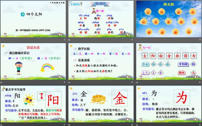 关键词:部编人教版一年级语文下册PPT课件免费下载,四个太阳PPT下载,.PPT格式;