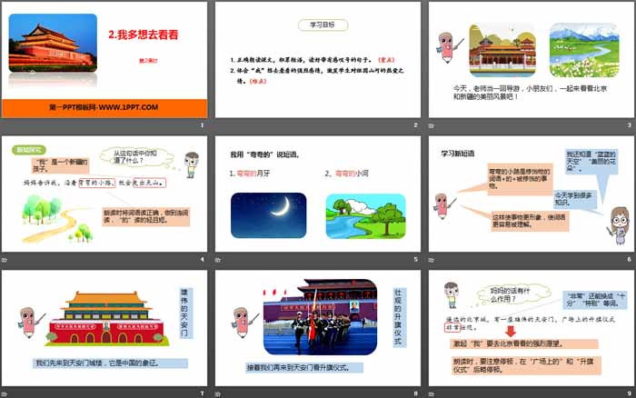 关键词:部编人教版一年级语文下册PPT课件免费下载,我多想去看看PPT下载,.PPT格式;