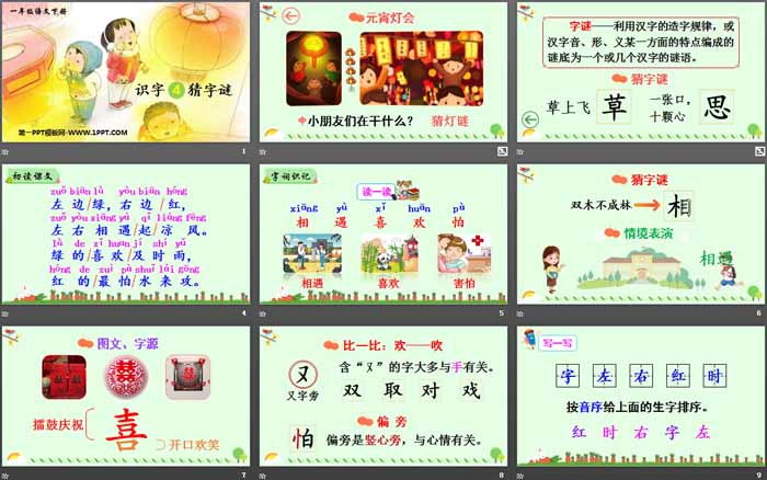 猜字谜PPT,第三部分内容:字词识记