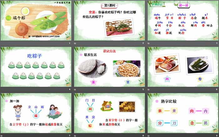 关键词:部编人教版一年级语文下册PPT课件免费下载,端午粽PPT下载,.PPT格式;