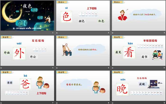 关键词:部编人教版一年级语文下册PPT课件免费下载,夜色PPT下载,.PPT格式;
