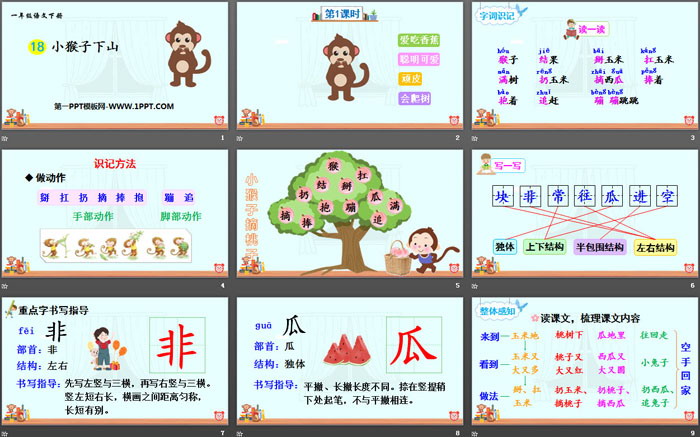 关键词:部编人教版一年级语文下册PPT课件免费下载,小猴子下山PPT下载,.PPT格式;
