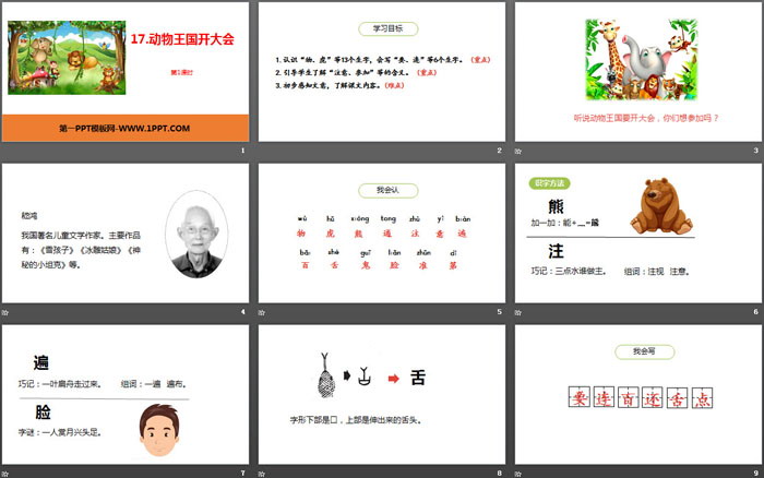 动物王国开大会PPT,第二部分内容:我会认