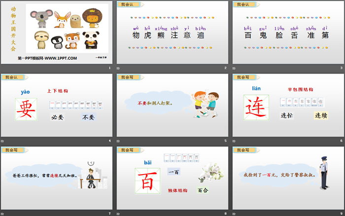关键词:部编人教版一年级语文下册PPT课件免费下载,动物王国开大会PPT下载,.PPT格式;