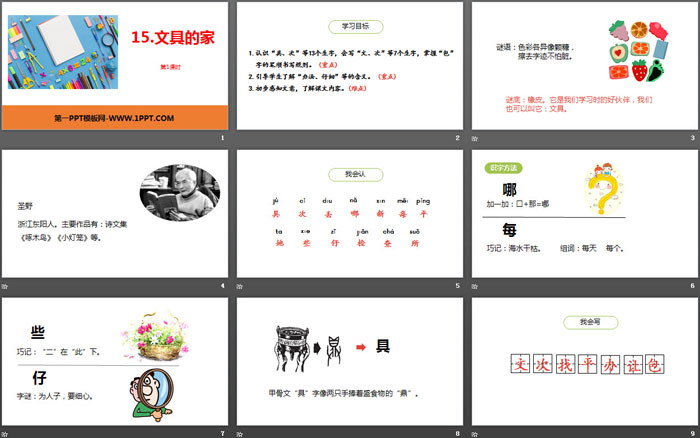 文具的家PPT,第二部分内容:我会认