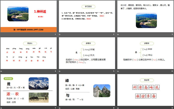 神州谣PPT,第二部分内容:我会认