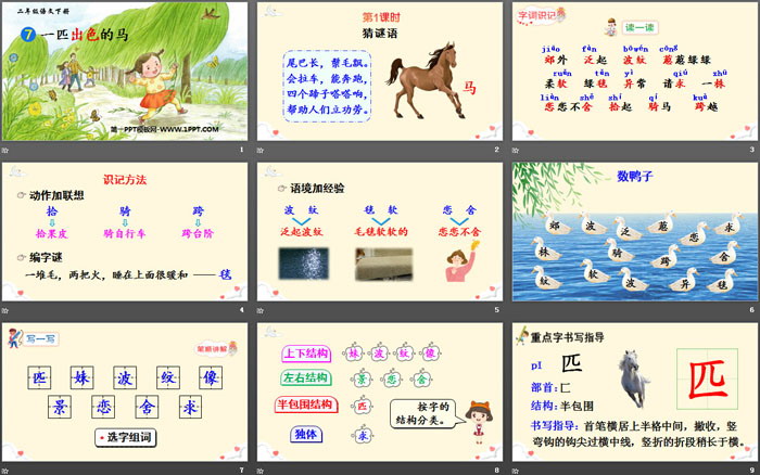 关键词:部编人教版二年级语文下册PPT课件免费下载,一匹出色的马PPT下载,.PPT格式;