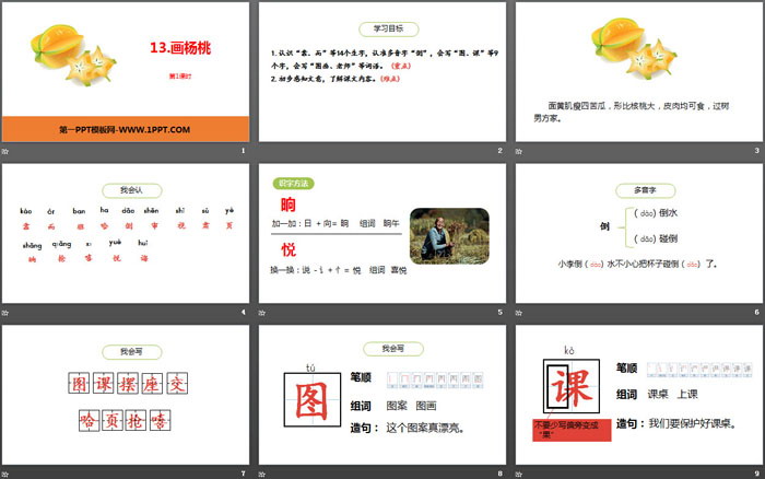 画杨桃PPT,第二部分内容:我会认