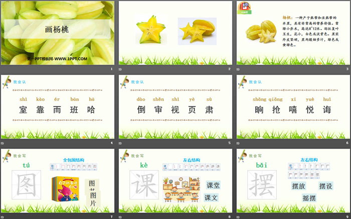 关键词:部编人教版二年级语文下册PPT课件免费下载,画杨桃PPT下载,.PPT格式;