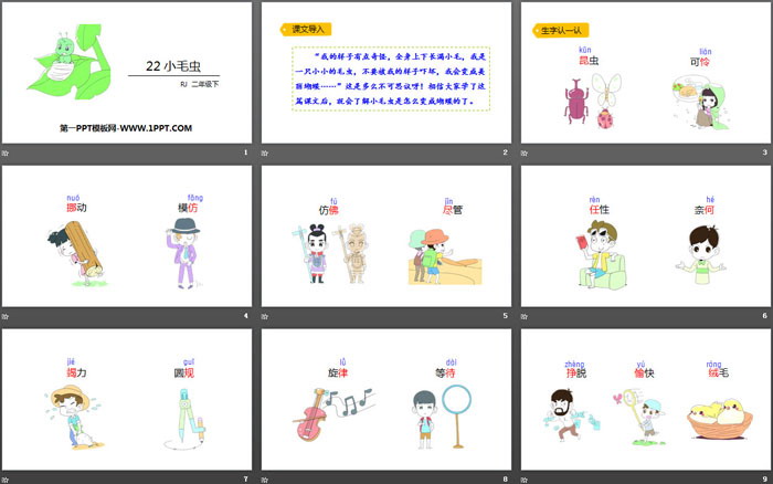 关键词:部编人教版二年级语文下册PPT课件免费下载,小毛虫PPT下载,.PPT格式;