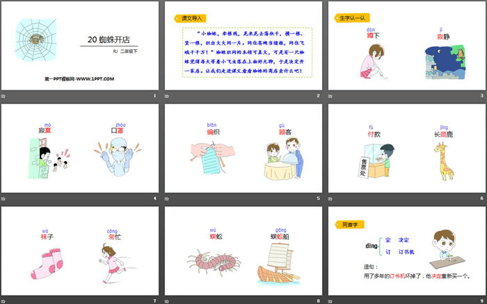蜘蛛开店PPT,第二部分内容:生字认一认