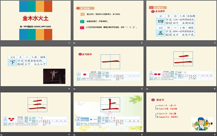关键词:部编版一年级上册语文PPT课件免费下载,金木水火土PPT下载,.PPT格式;