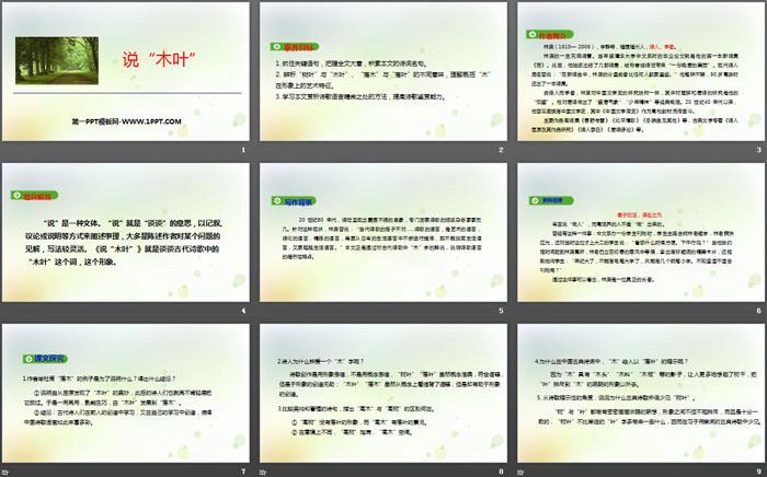 关键词:部编人教版高中语文必修二PPT课件免费下载,说木叶PPT下载,.PPT格式;