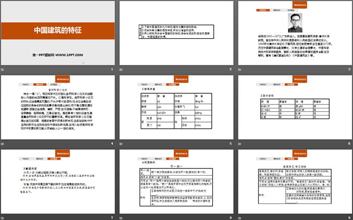 1.了解中国建筑的九大特征,理清文章的结构脉络。