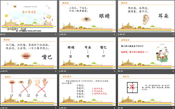 关键词:部编版一年级上册语文PPT课件免费下载,口耳目PPT下载,.PPT格式;