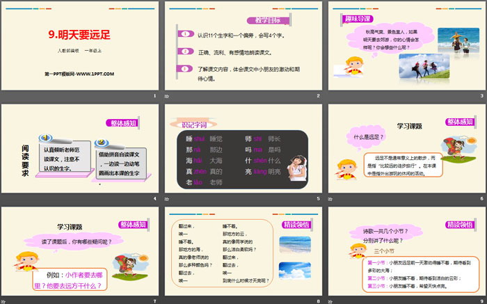 关键词:部编人教版一年级上册语文PPT课件免费下载,明天要远足PPT下载,.PPT格式;