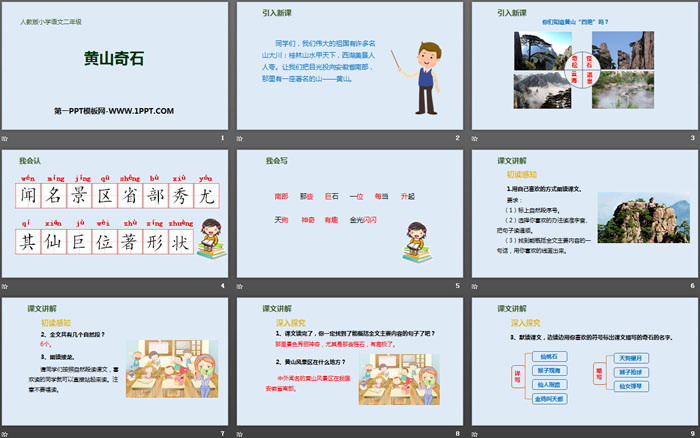 关键词:部编人教版二年级上册语文PPT课件免费下载,黄山奇石PPT下载,.PPT格式;