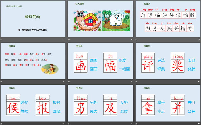 关键词:部编人教版二年级上册语文PPT课件免费下载,玲玲的画PPT下载,.PPT格式;