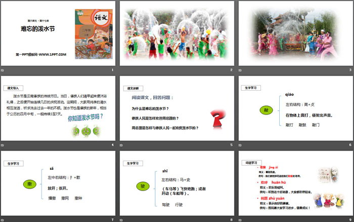 关键词:部编人教版二年级上册语文PPT课件免费下载,难忘的泼水节PPT下载,.PPT格式;