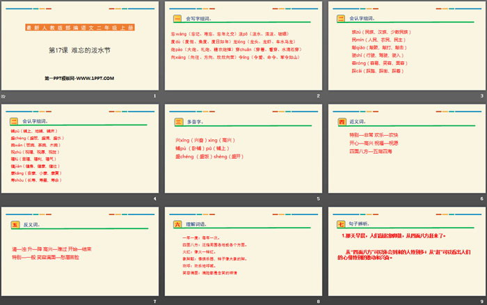 关键词:部编人教版二年级上册语文PPT课件免费下载,难忘的泼水节PPT下载,.PPT格式;