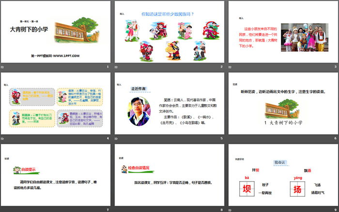 关键词:部编人教版三年级上册语文PPT课件免费下载,大青树下的小学PPT下载,.PPT格式;