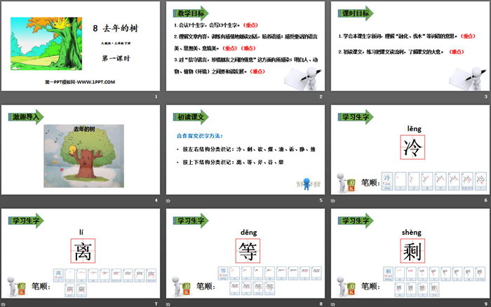 关键词:部编人教版三年级上册语文PPT课件免费下载,去年的树PPT下载,.PPT格式;
